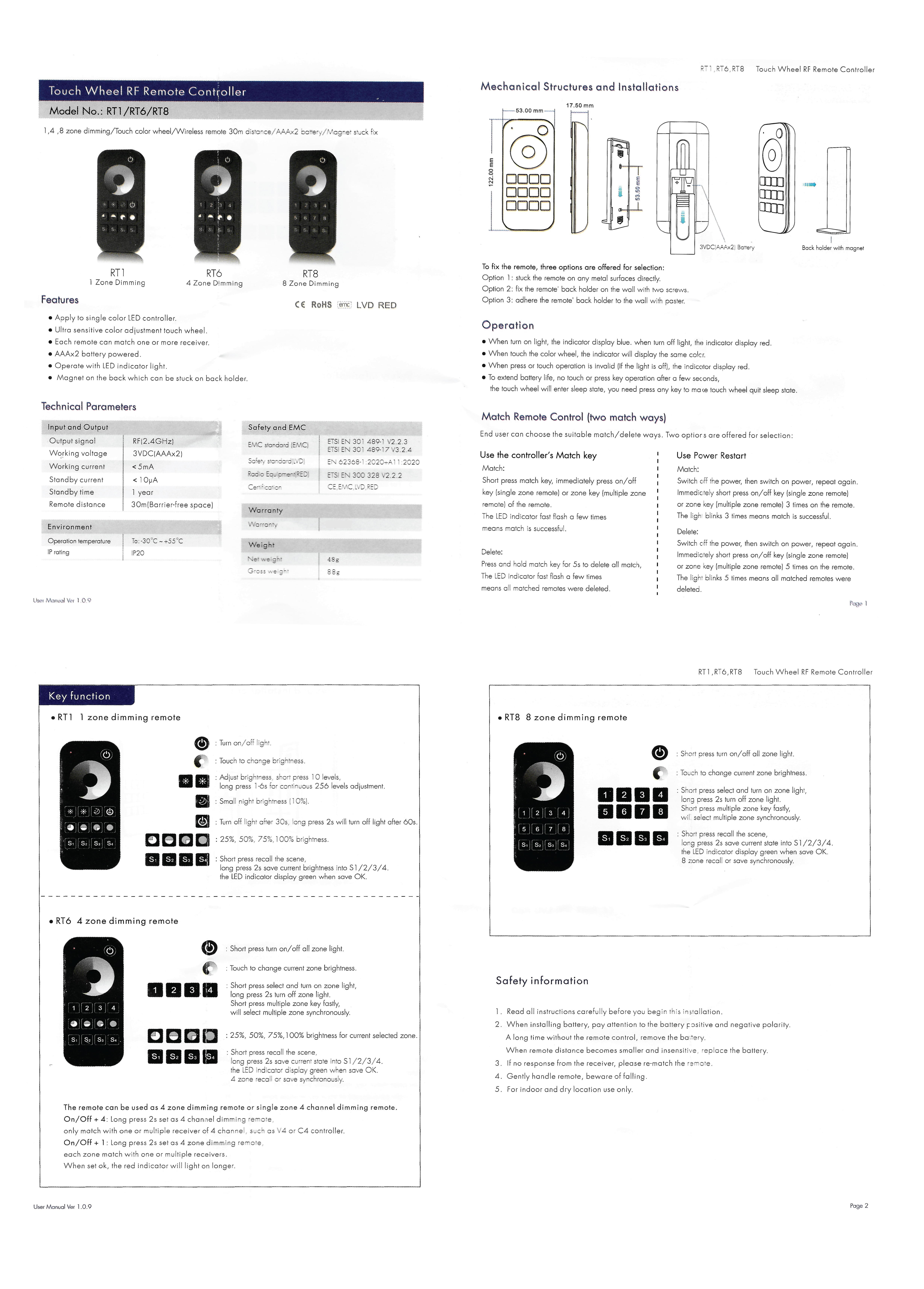 See the Supporting Info tab for more instructions for use, including how to match the remote to a receiver.