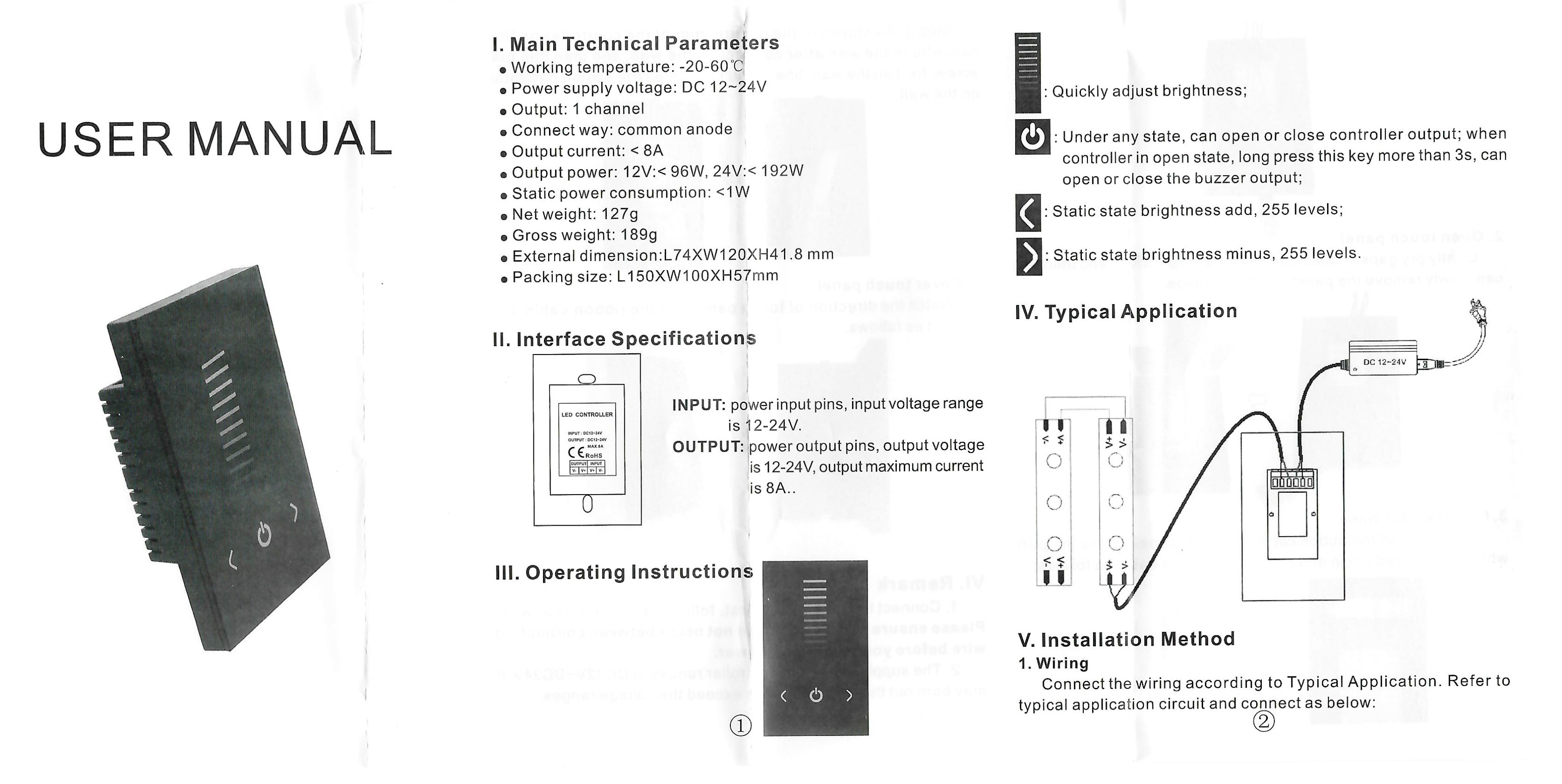 | Controller Dimensions | H=120mm, W=73.5mm, D=42mm |